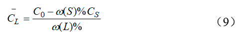 In the formula, is the solid mass fraction; is the liquid mass fraction. According to formula (8), the content of solute elements in the liquid surrounding the solid can be calculated as: