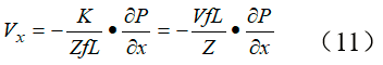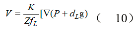 When considering the one-dimensional flow and the homogeneity of the liquid, equation (10) becomes: