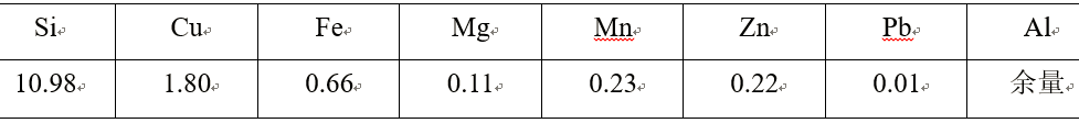 Table 1 The chemical composition of ADC12 alloy wb/%