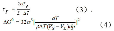 In the formula, Lm is the latent heat of fusion; is the density; is the surface tension; is the degree of subcooling.